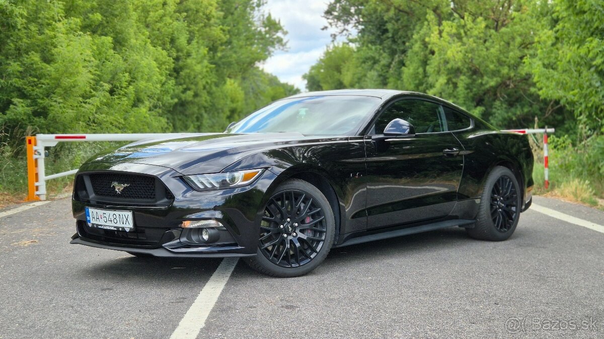 Čierny Ford Mustang 5.0 V8 GT (2018) v plnej kráse – pripravený stať sa vaším spoločníkom na nezabudnuteľných cestách.